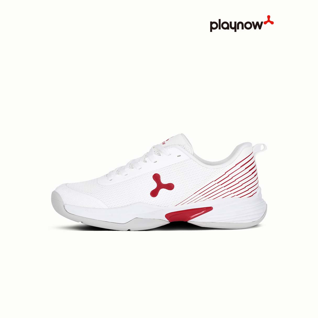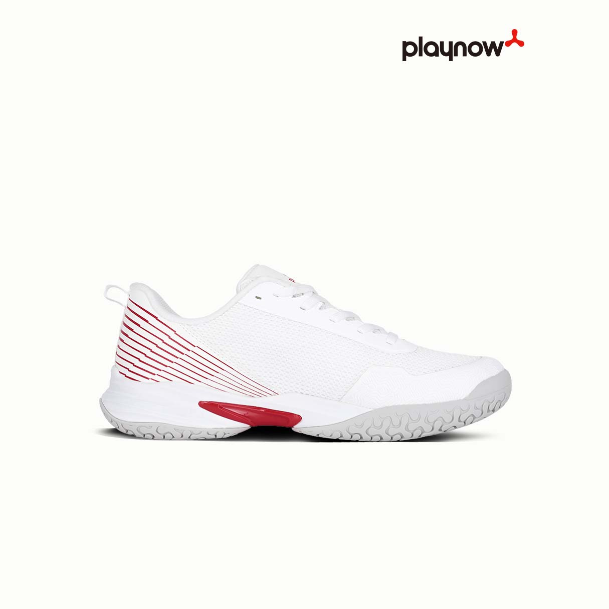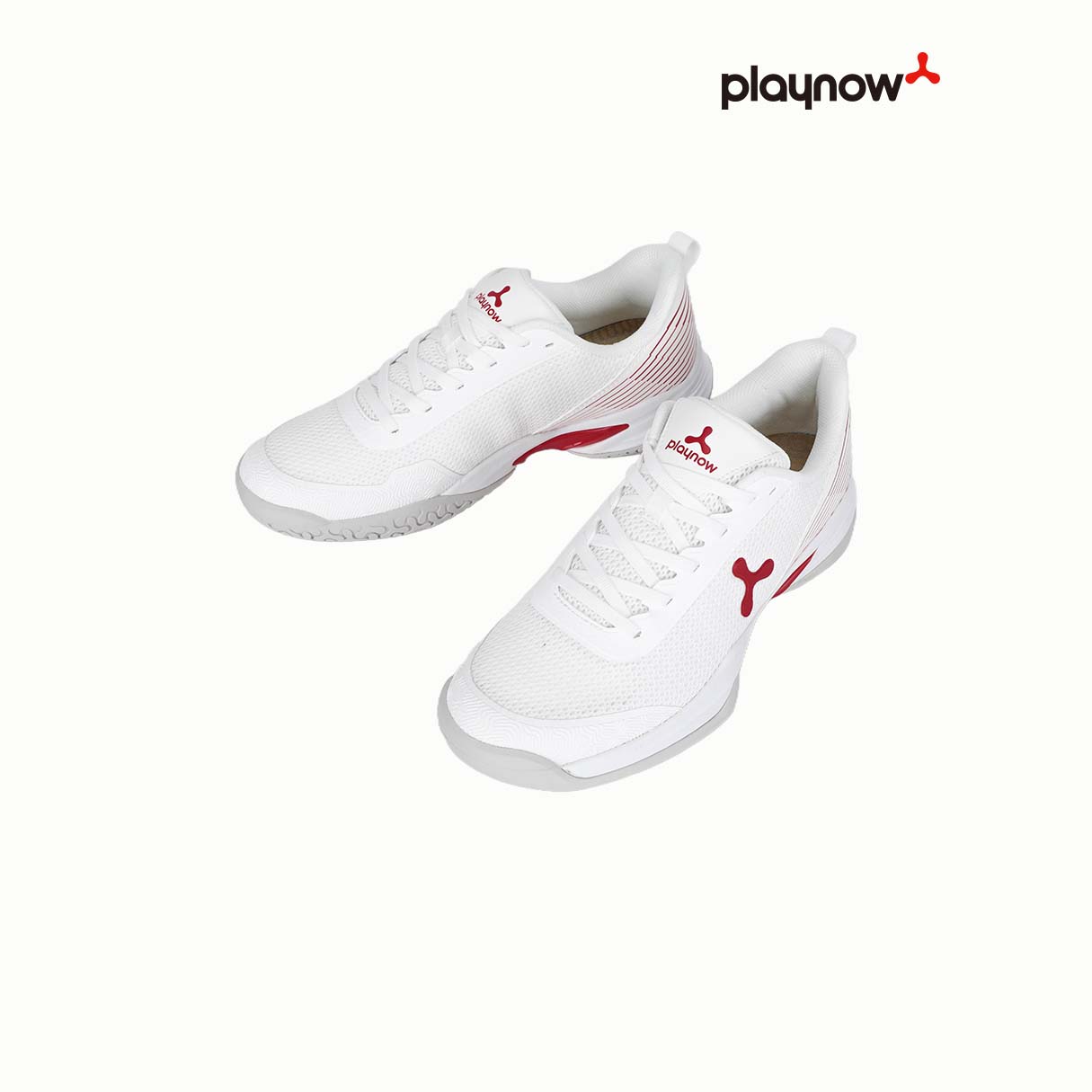 The PlayNow White and Red sports shoes are designed for sports enthusiasts, made with high-quality breathable mesh to keep your feet cool and dry during intense activities. The sleek red stripe design not only offers a modern athletic look but also adds a stylish touch to your sports gear. The durable rubber sole provides excellent traction and durability, helping you perform your best in every move. Whether you’re playing pickleball, tennis, or running, these shoes provide optimal support and flexibility.